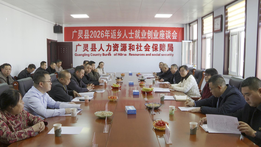 2月19日正月初三下午,广灵县2026年返乡人士就业创业座谈会在县人力资源和社会保障局召开。县人大常委会主任刘玉清,县人大常委会副主任许翠叶,广灵经开区党工委副书记、管委会副主任梁永正,县有关部门、各乡镇负责人与在外就业创业的返乡人士代表欢聚一堂、共贺新春,畅叙乡情、共谋发展。
