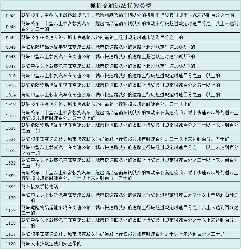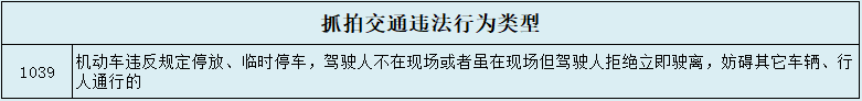 七、违法停车自动抓拍设备抓拍违法行为类型: