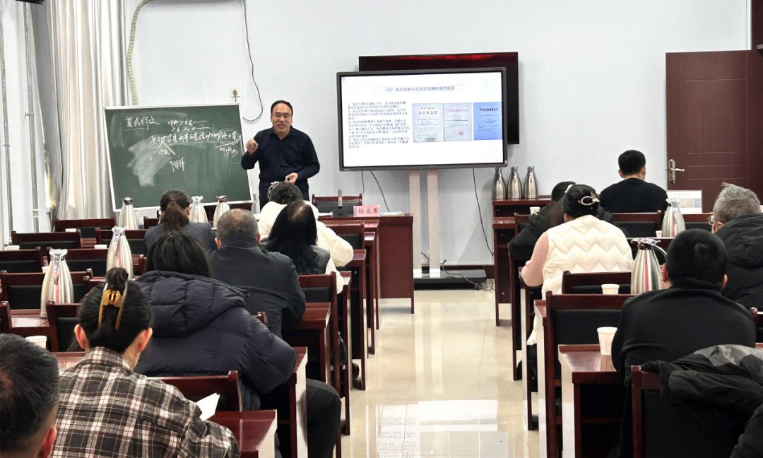 杨立军针对国有企业办公室工作特点,结合自己近40年的公文写作实践经验,系统讲授了我国公文发展简史、公文写作法规、公文文种及格式、公文写作技巧等公文写作基础知识。授课根据新时代建立中国特色现代企业制度的需要,紧密结合县属国有企业管理的特点,既有理论支撑,又有案例结合,风格生动风趣幽默,学员现场互动气氛浓厚。