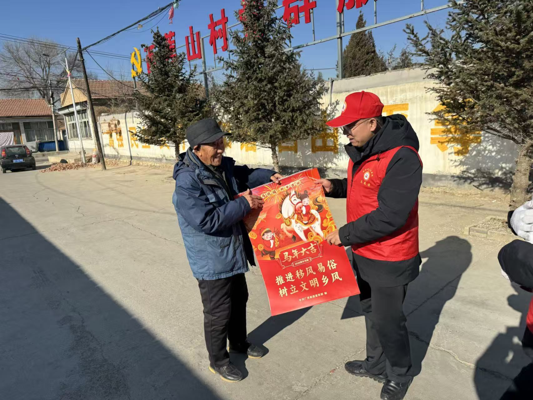 文明实践者们走向街头,在为过往群众发放宣传挂历的同时,围绕移风易俗“十抵制十提倡”内容,结合我县婚丧嫁娶相关风俗,现场讲解抵制高额彩礼、反对大操大办、倡导厚养薄葬等具体内容,开展移风易俗知识宣传、文明倡议等,引导大家对照“十抵制十提倡”内容,主动践行文明新风。同时开展入户走访,将宣传挂历送到群众家中,向群众面对面解读移风易俗相关政策。