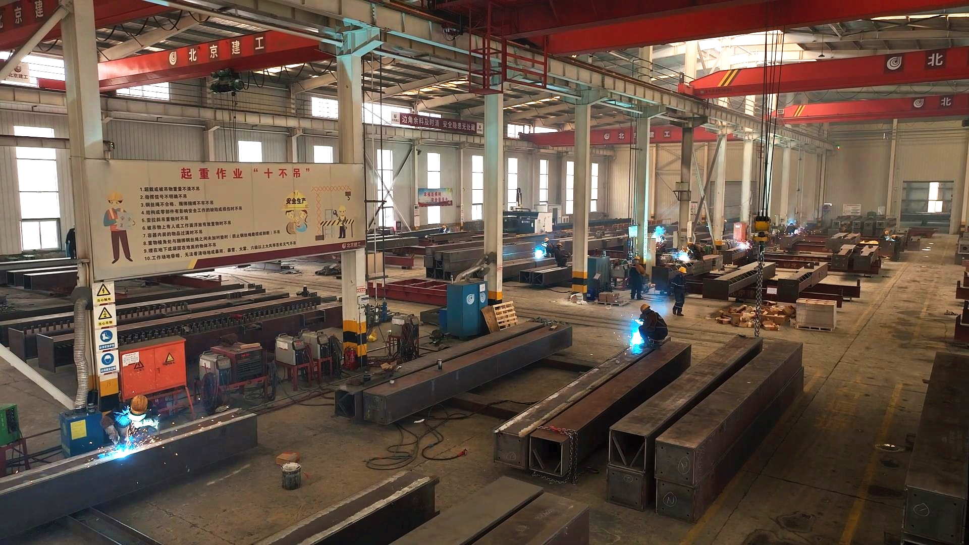 值得一提的是,东方金鼎的100余名工人中,广灵本地工人占了一半。这些本地技术工人凭借过硬的焊接、拼装等专业技能,日均收入可达350元,月入过万,成为家门口就业的“高薪族”,也为当地群众增收致富开辟了实实在在的路径。走进生产车间,生产线上一片热火朝天。工人们熟练地操作设备,一块块钢板经过切割、焊接、拼装,逐渐成型为建筑钢结构构件。