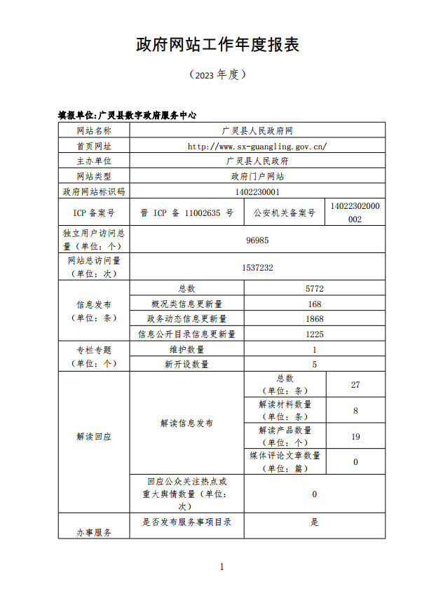 广灵县人民政府门户网站工作年度报表(2023年度)