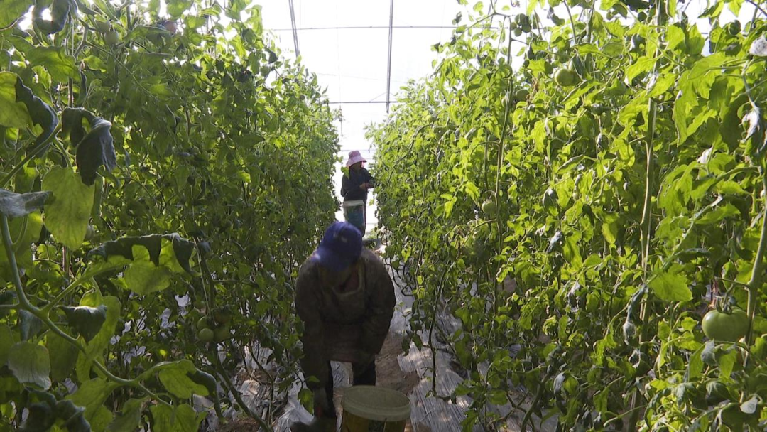 “这一茬西红柿长得特别好,行情也好。”正在忙碌的村民刘保玲说,“现在一天干四五个小时,能挣一百多块,一个月下来有三千左右的收入,我们在家门口就有活干,还能照顾家里,比过去强多了!”